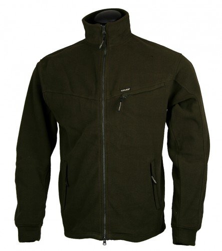 Teplá příjemná lovecká bunda Fleece se zapínáním na dlouhý zip. Tato lovecká bunda má dvě kapsy a stahování ve spodní části.
